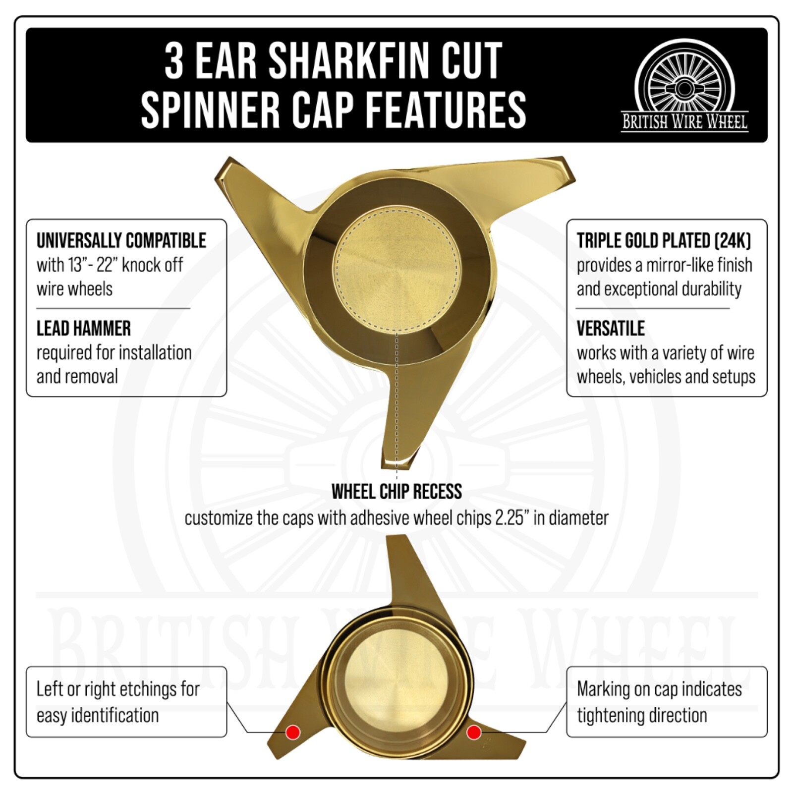 • (4) 3 Ear Swept Cut Gold Spinner Caps – 2 Right, 2 Left Sides