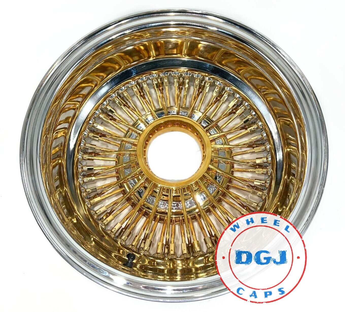 13×7 Zenith Style Rev 72 Straight Spokes Center Gold Lowrider Wire Wheel Rims