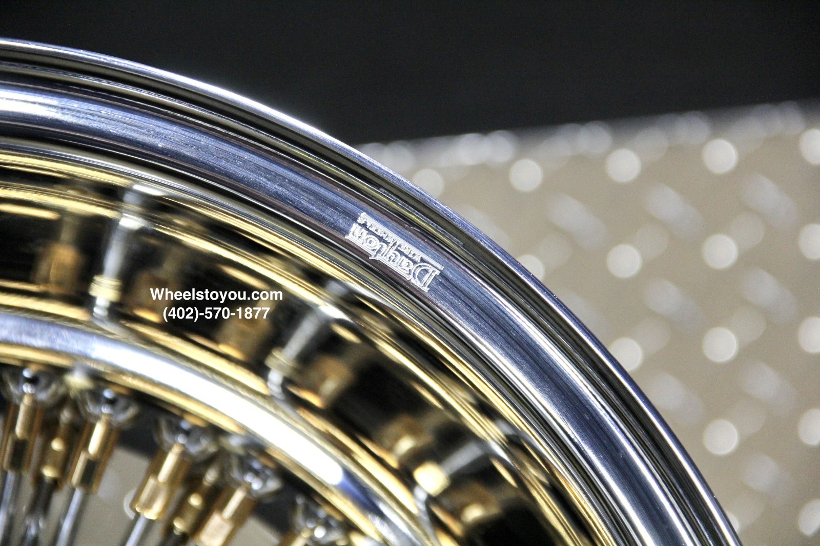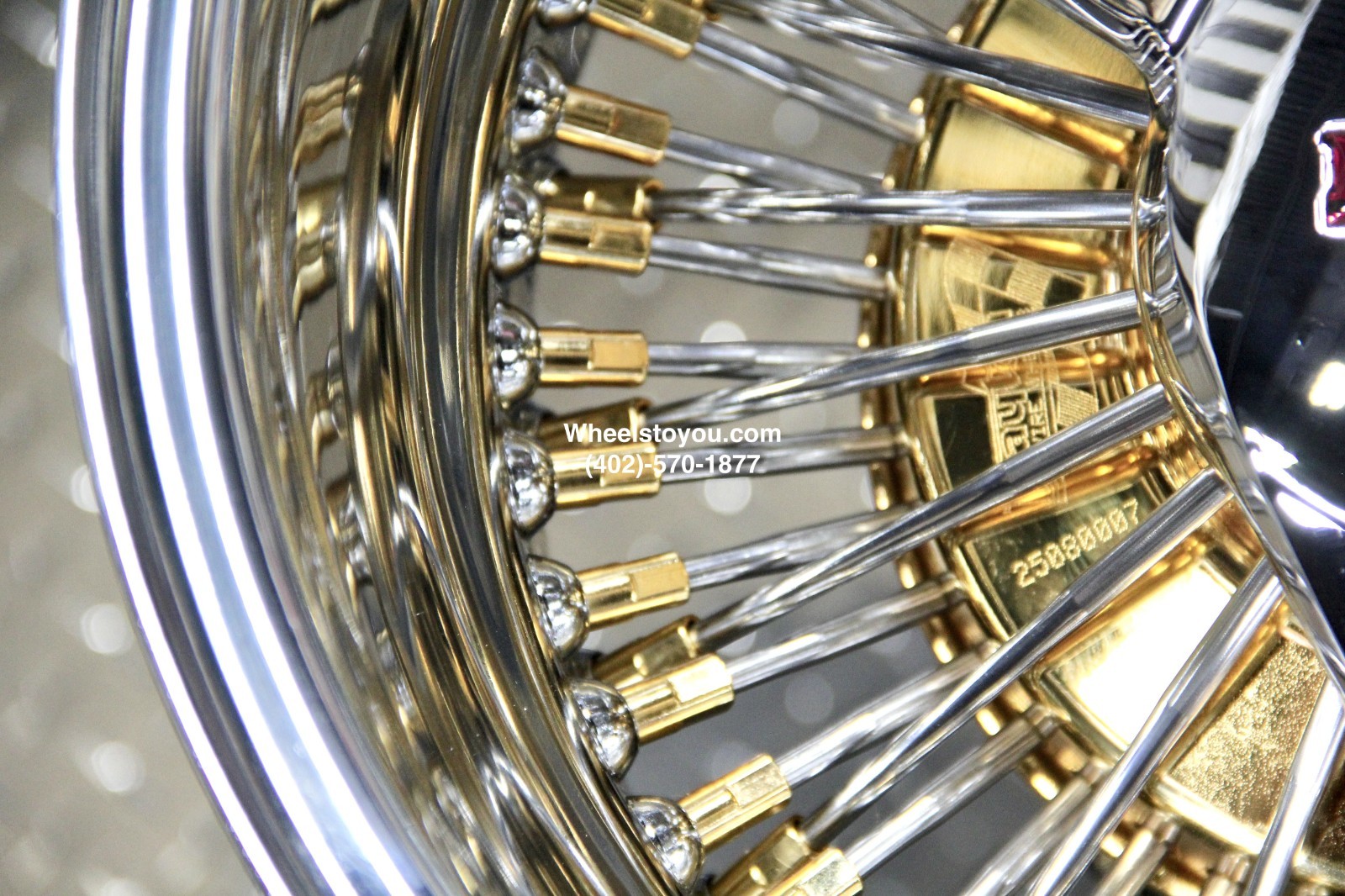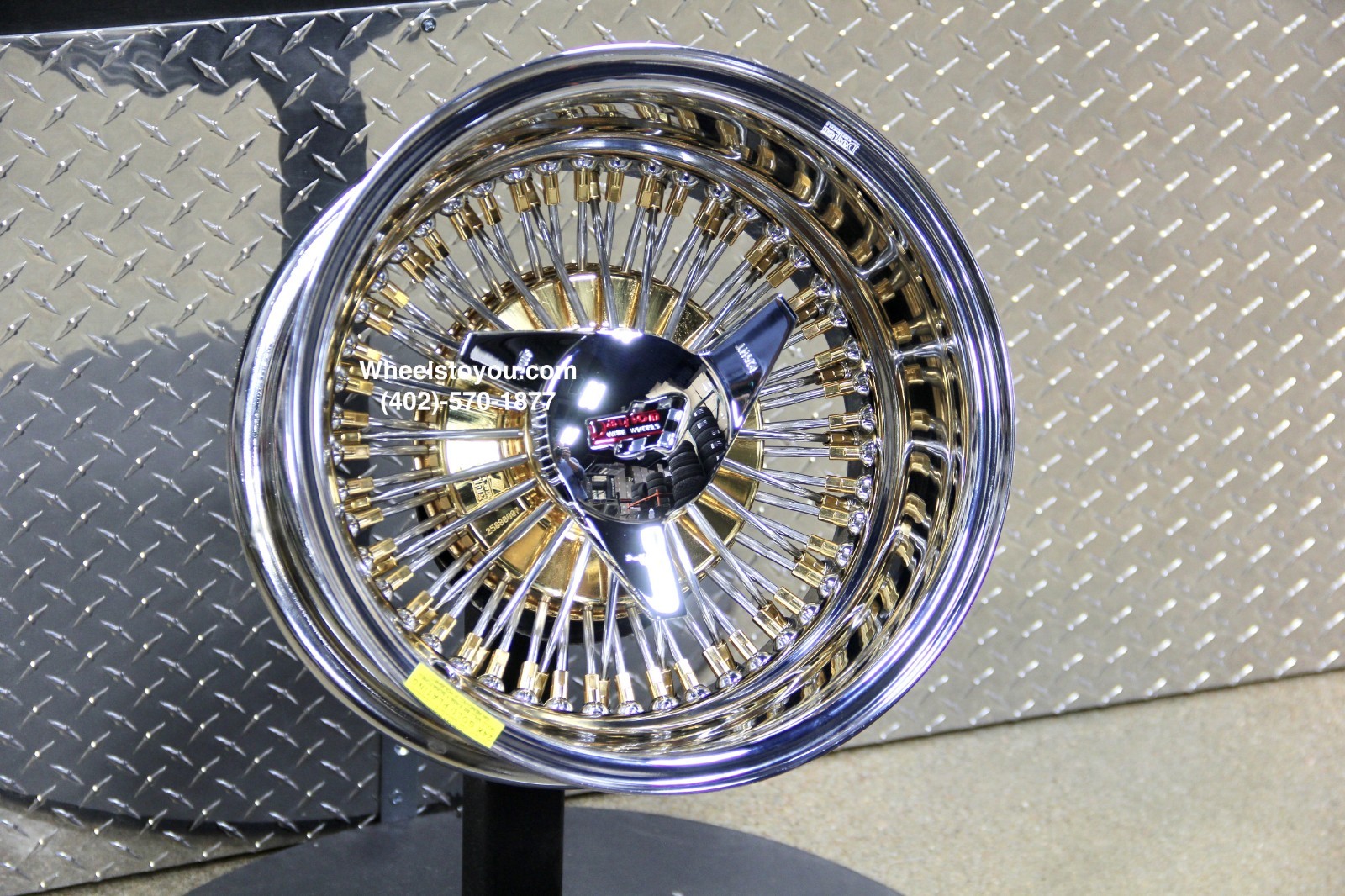 This Custom Made Gold & Chrome Genuine Dayton Wire Wheel Set is One of a Kind and is IN STOCK!