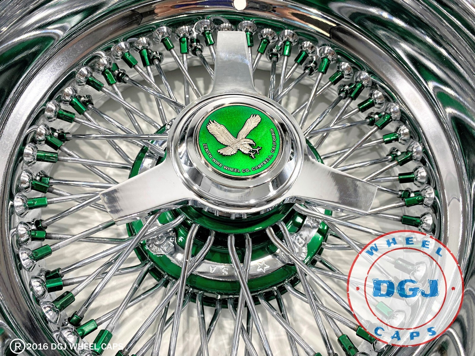 DGJ WHEEL 13×7 Rev 72 Cross Lace Candy Green Nipples & Hub Lowrider Wire Wheels