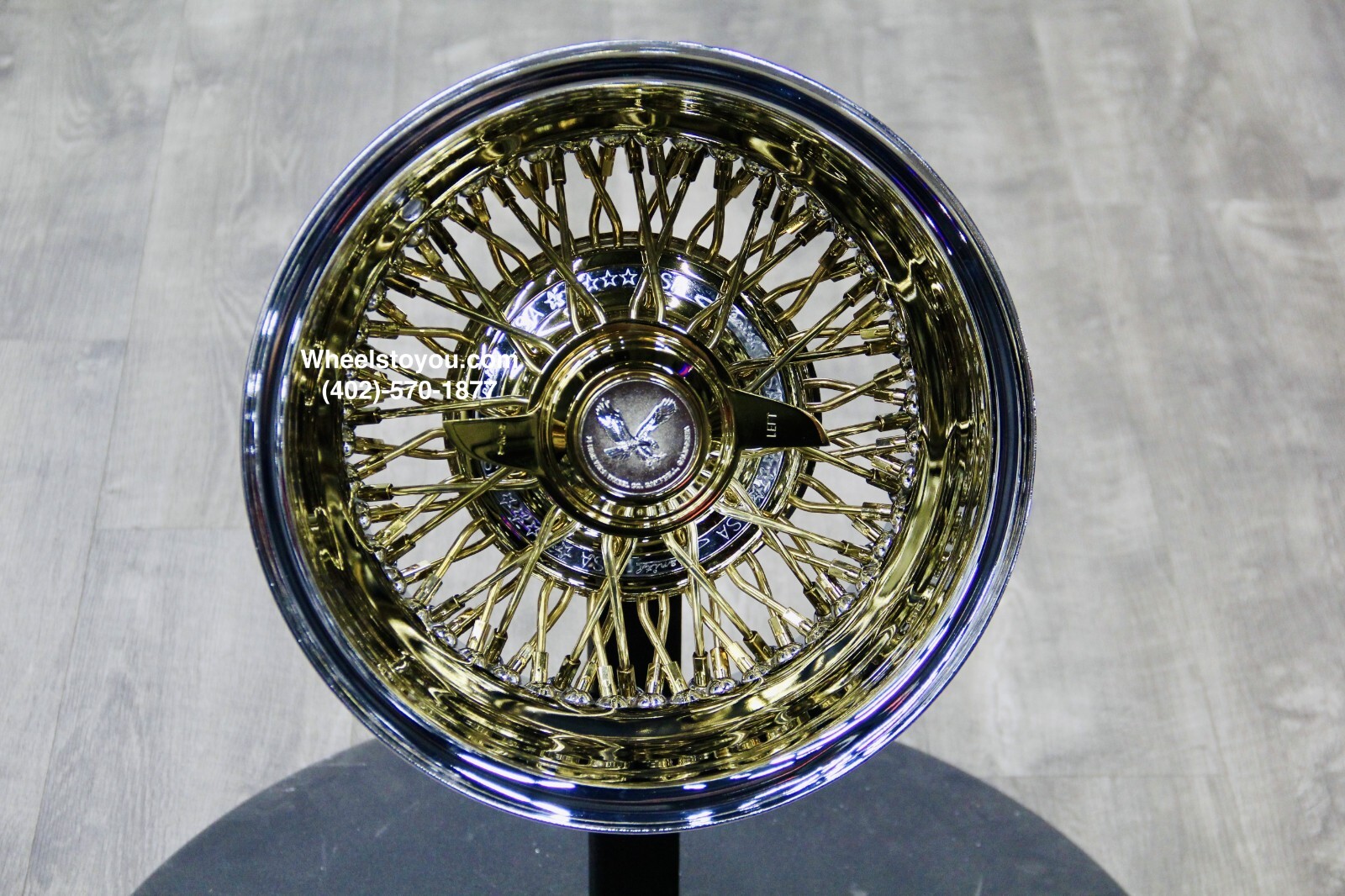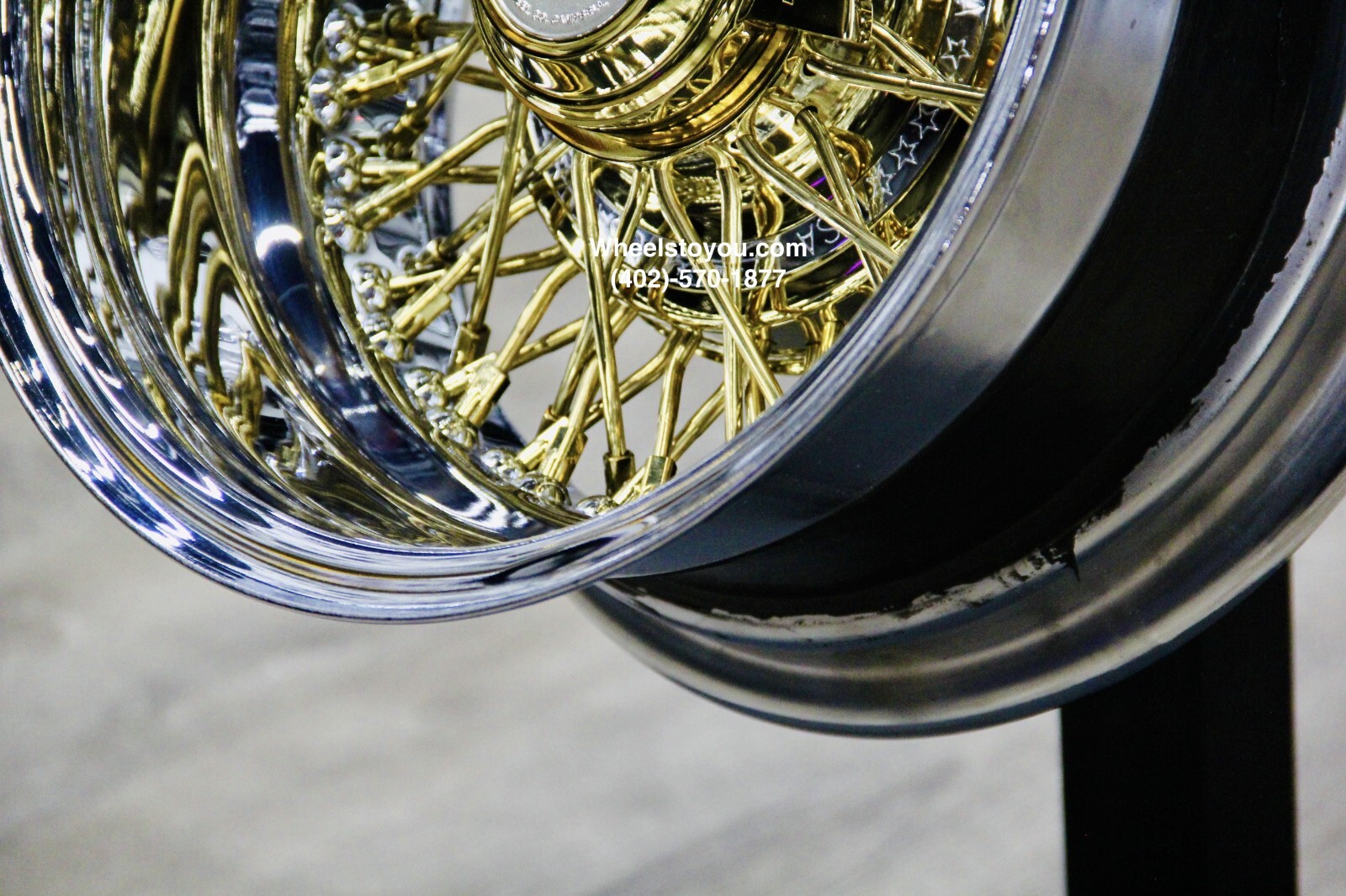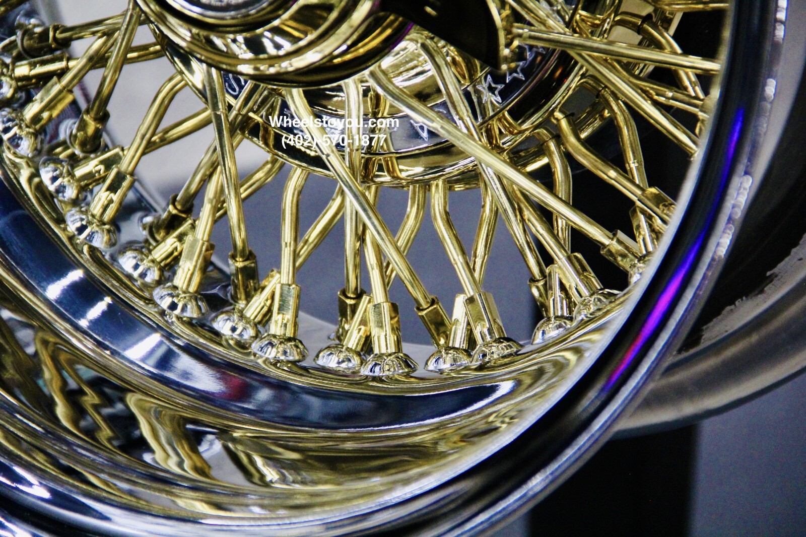 Finish: Gold Hub with Chrome Ring, Gold Spokes and Nipples with Chrome Dish and Gold Spinner.