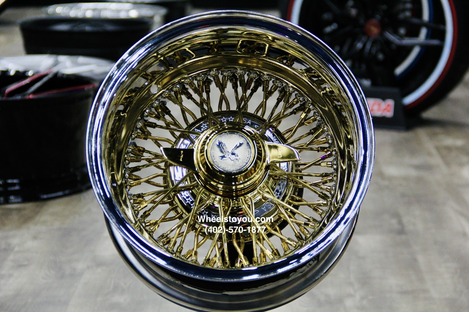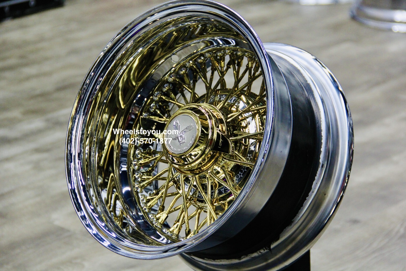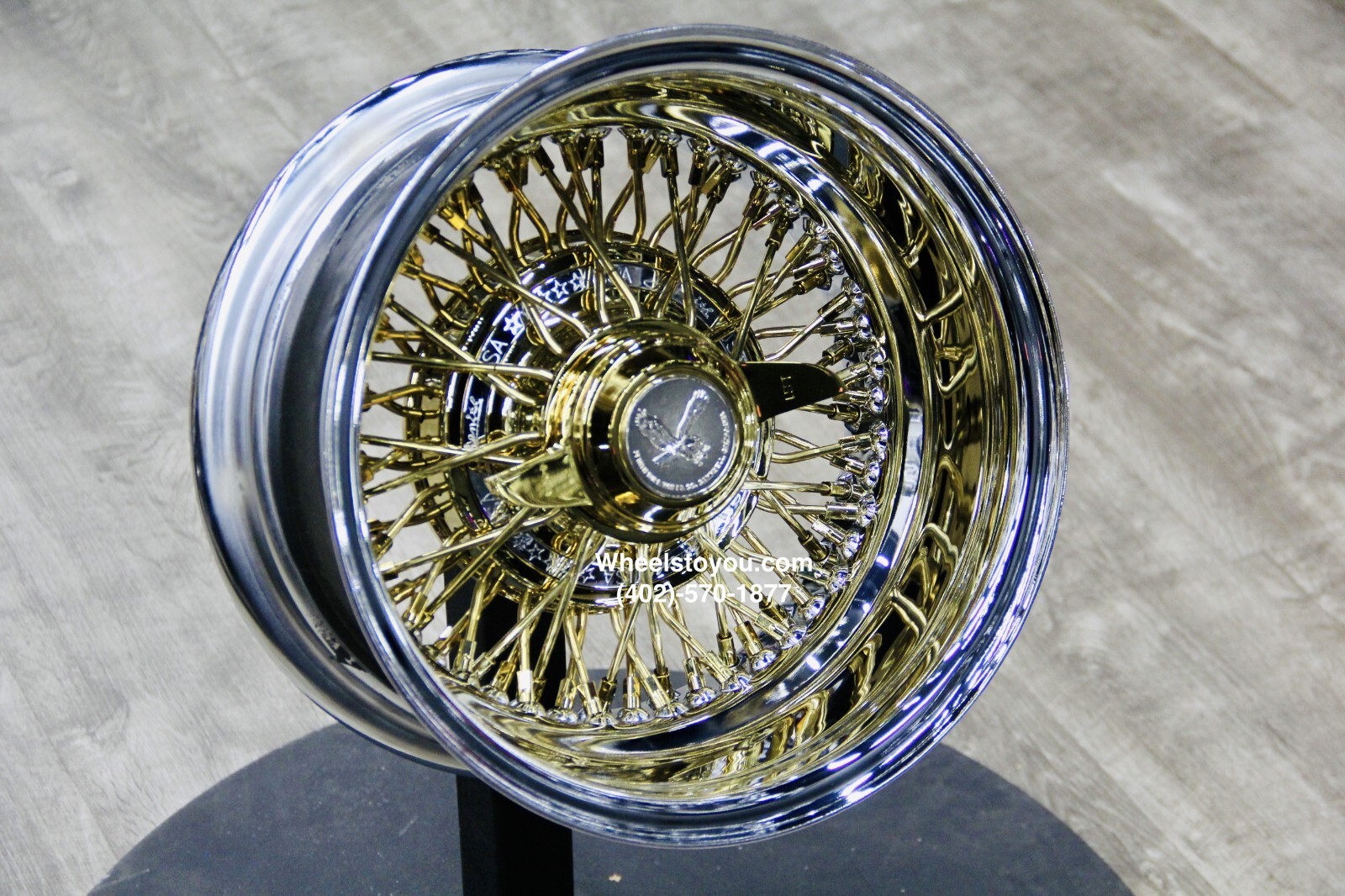 Finish: Gold Hub with Chrome Ring, Gold Spokes and Nipples with Chrome Dish and Gold Spinner.