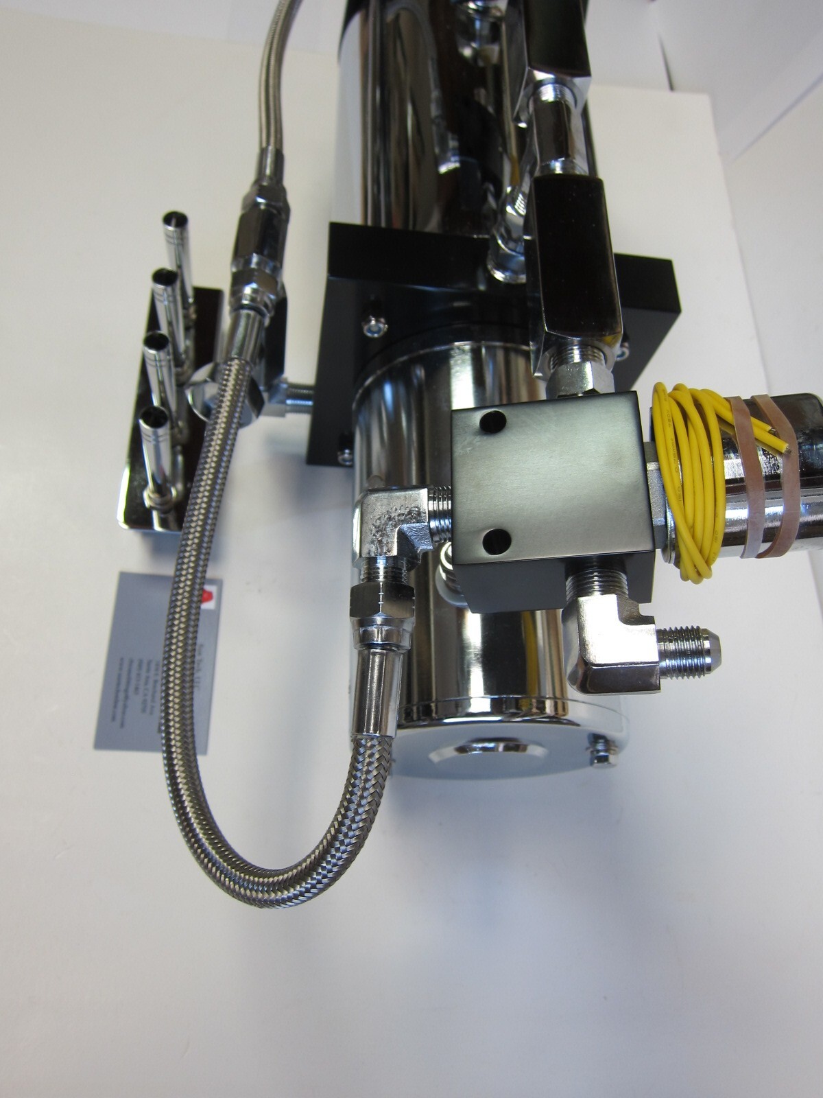 One (1) anodized black block 1/2″ pressure ports, and 3/8″ return port, with 4 stainless steel inserts.