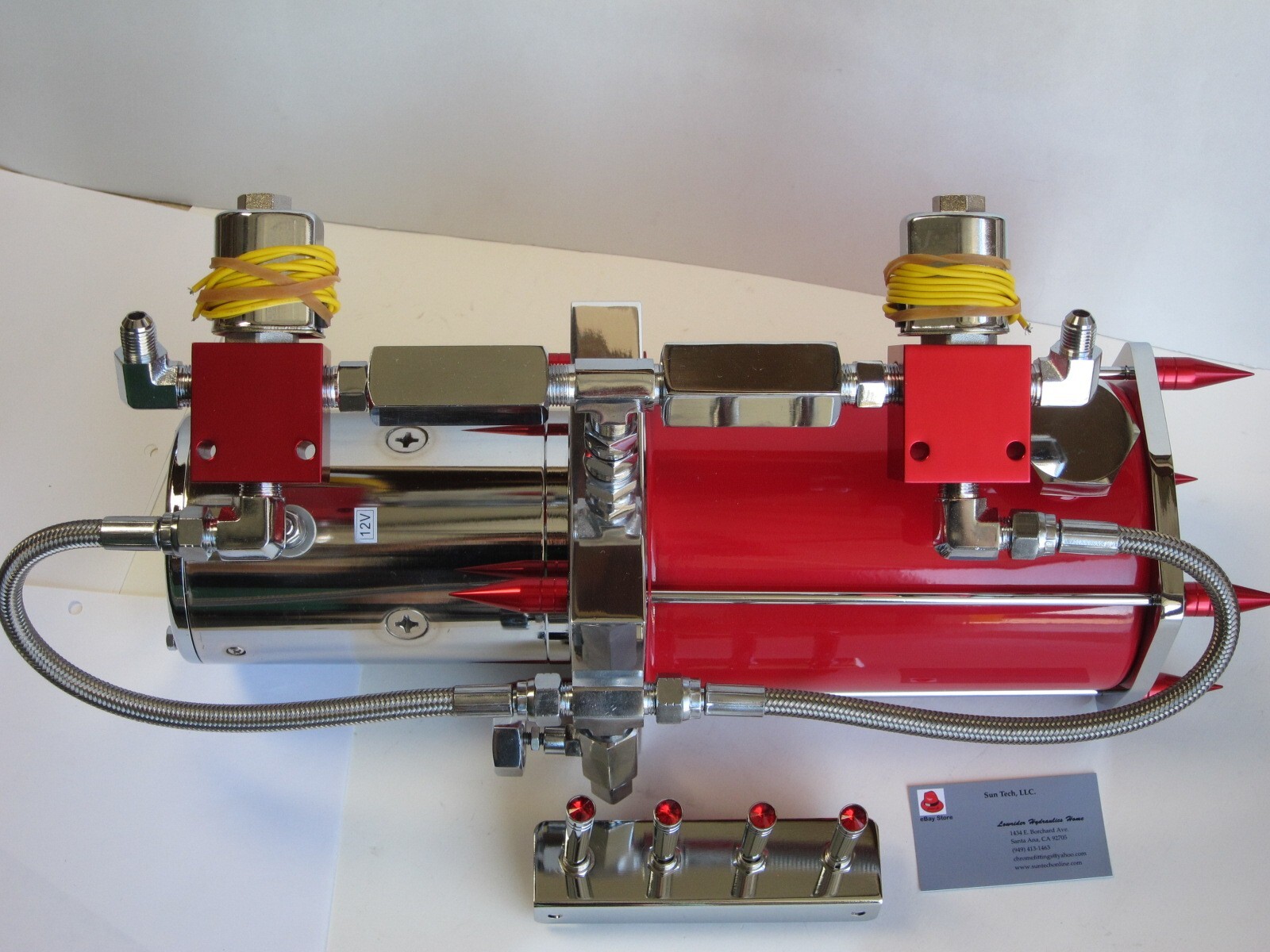 If any buyer wants to exchange certain parts, please feel free to let us know before placing the order. We will do our best to meet your need. All above are complete two dump setting kit for standard lowrider hydraulics. They all are new and never been used before. Our products quality is guaranteed. The finish is chrome and polished and it is one of best looks in today’s market. Shipping is free for lower US 48 states.