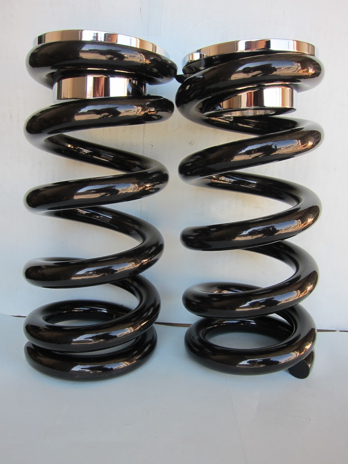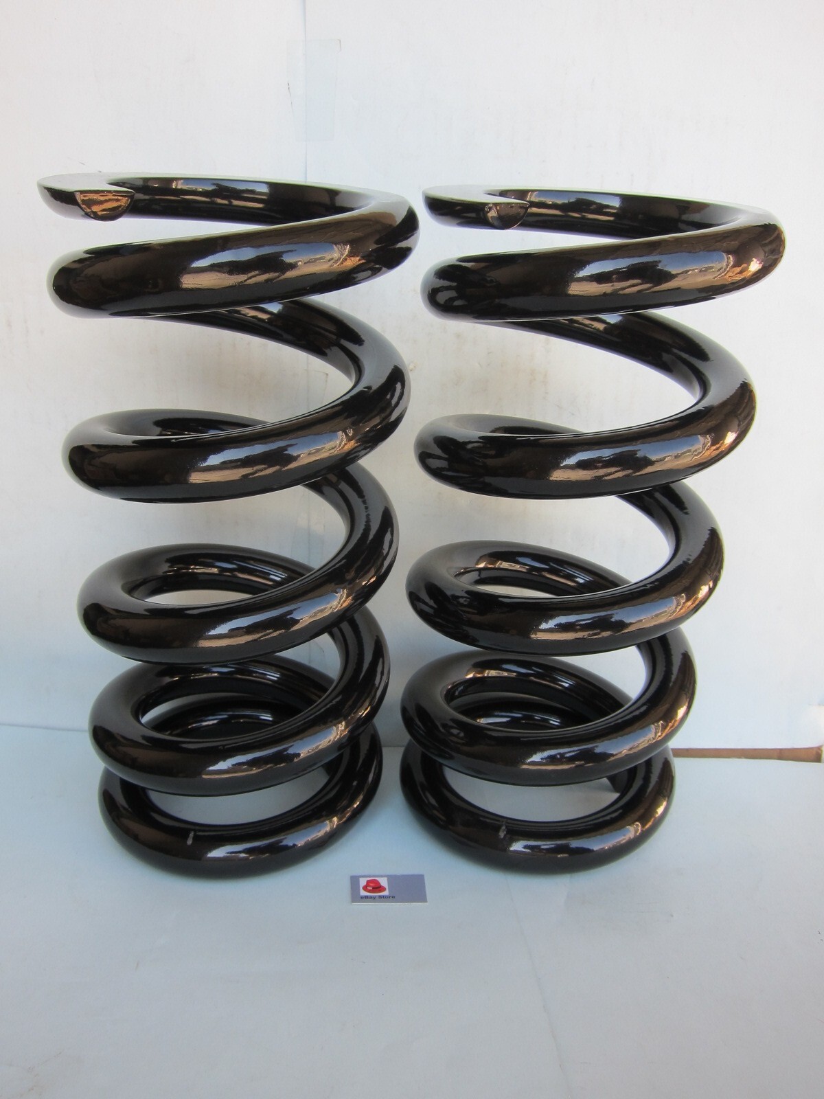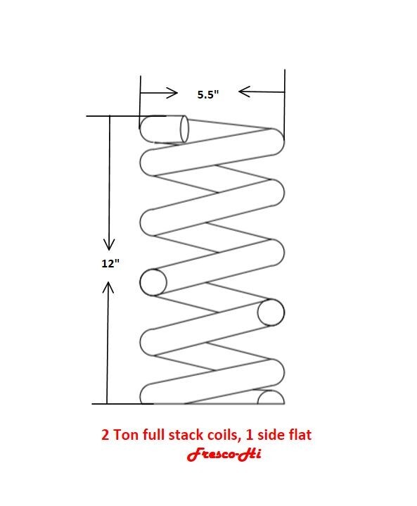 One (1) pair of full stack coil springs, 2 ton, black painting finish. Machine-cup flat one side. Good for front installation.