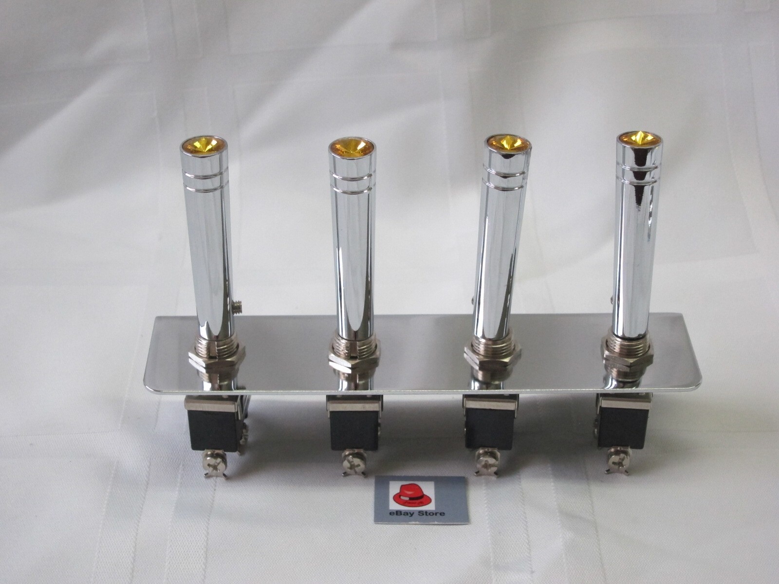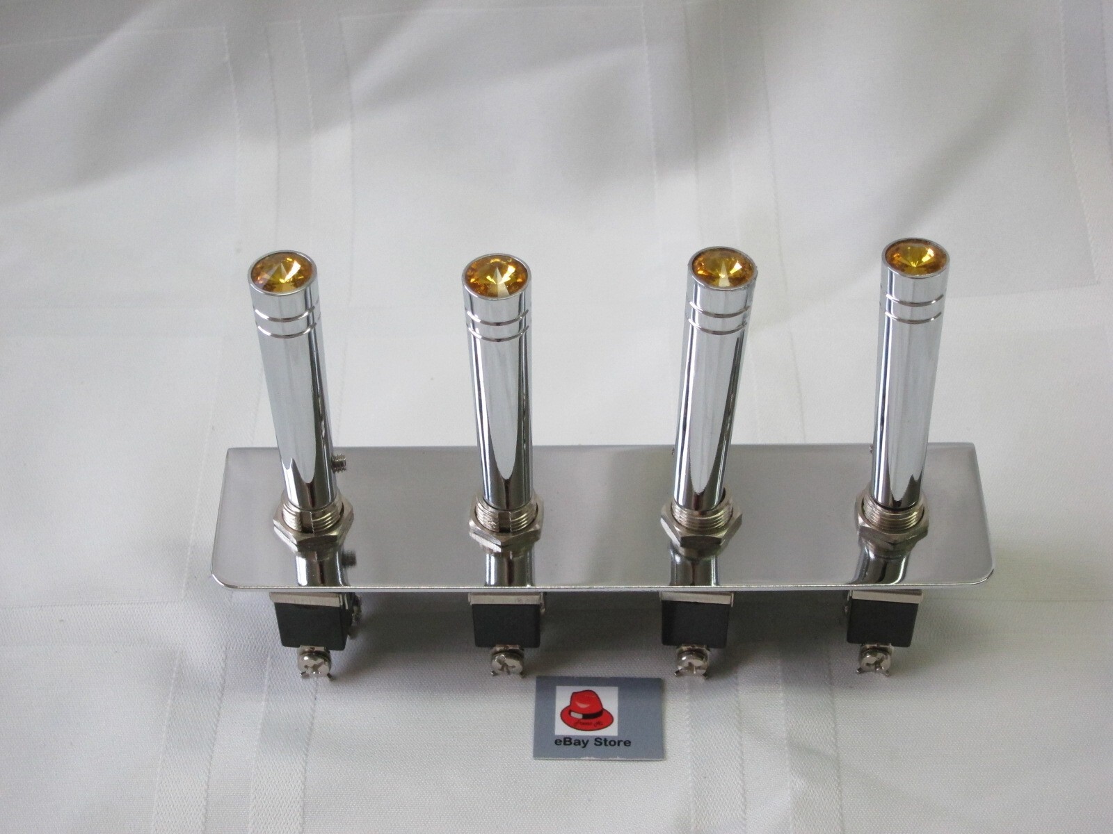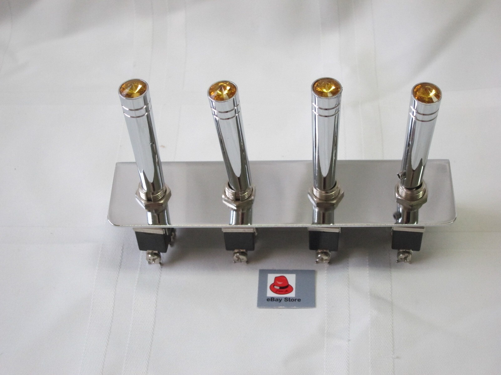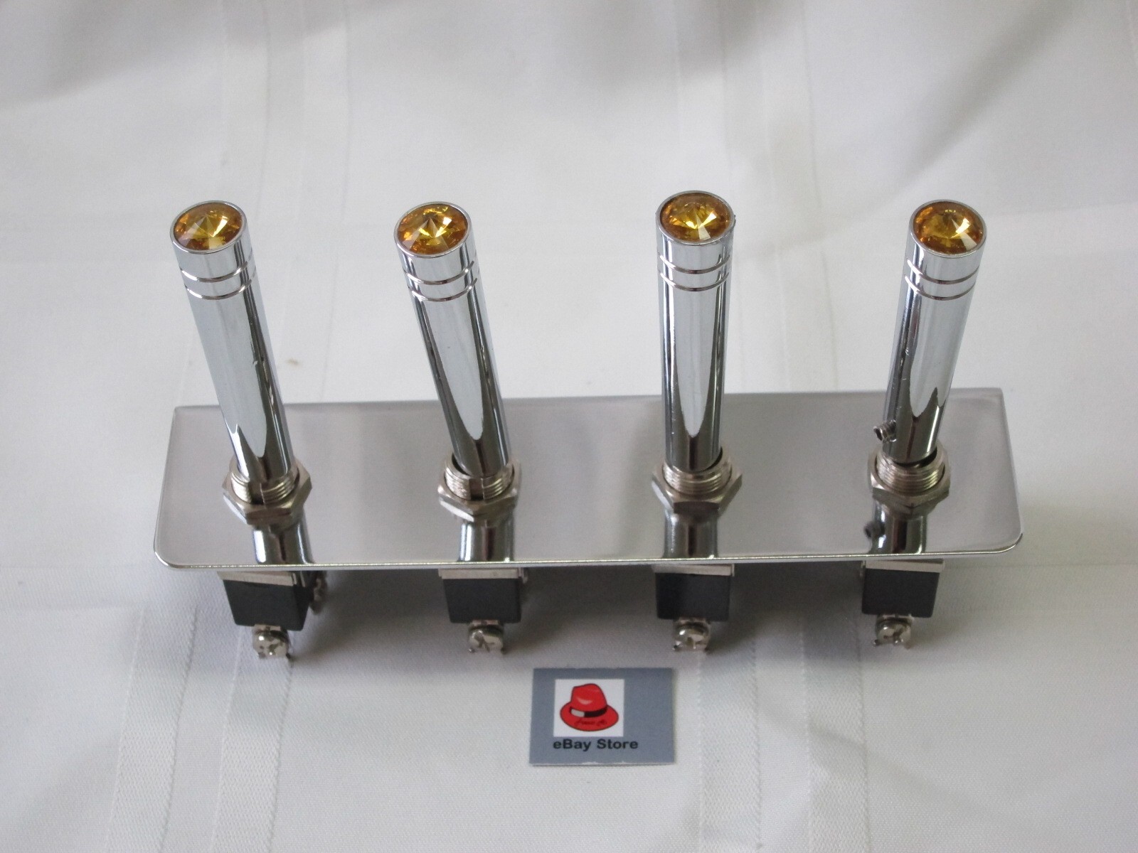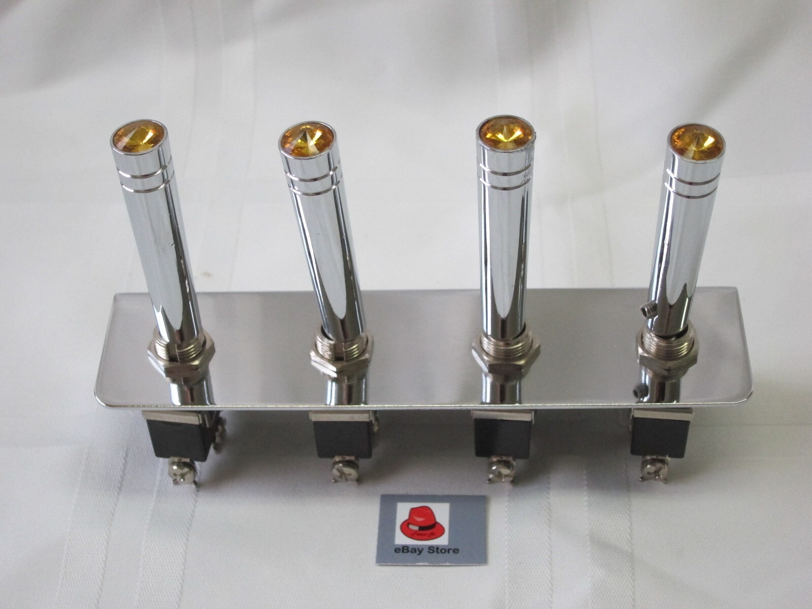 You are bidding for a kit of four 3 prongs (terminals) toggle switches, one 4 hole panel, 4 gold switch extensions for lowrider hydraulic setup or other applications. This is momentary on-off-on toggle switches, applicable from 12v to 24v DC. The products have long been regarded top quality by many users. The product fits the following capacity: