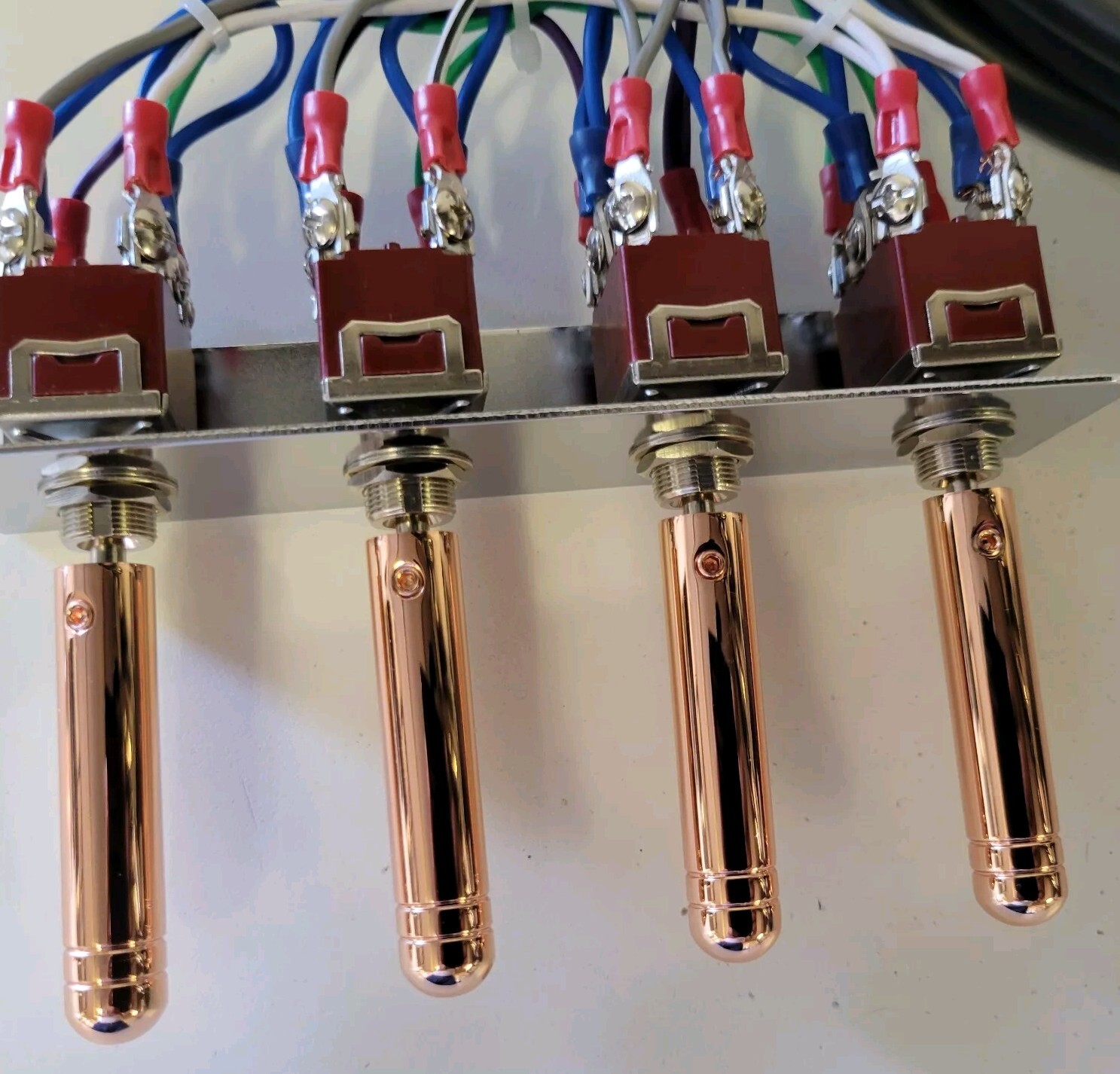 PRE WIRED switches with nickelplated plate + ROSE GOLD metal extentions with sets crew.