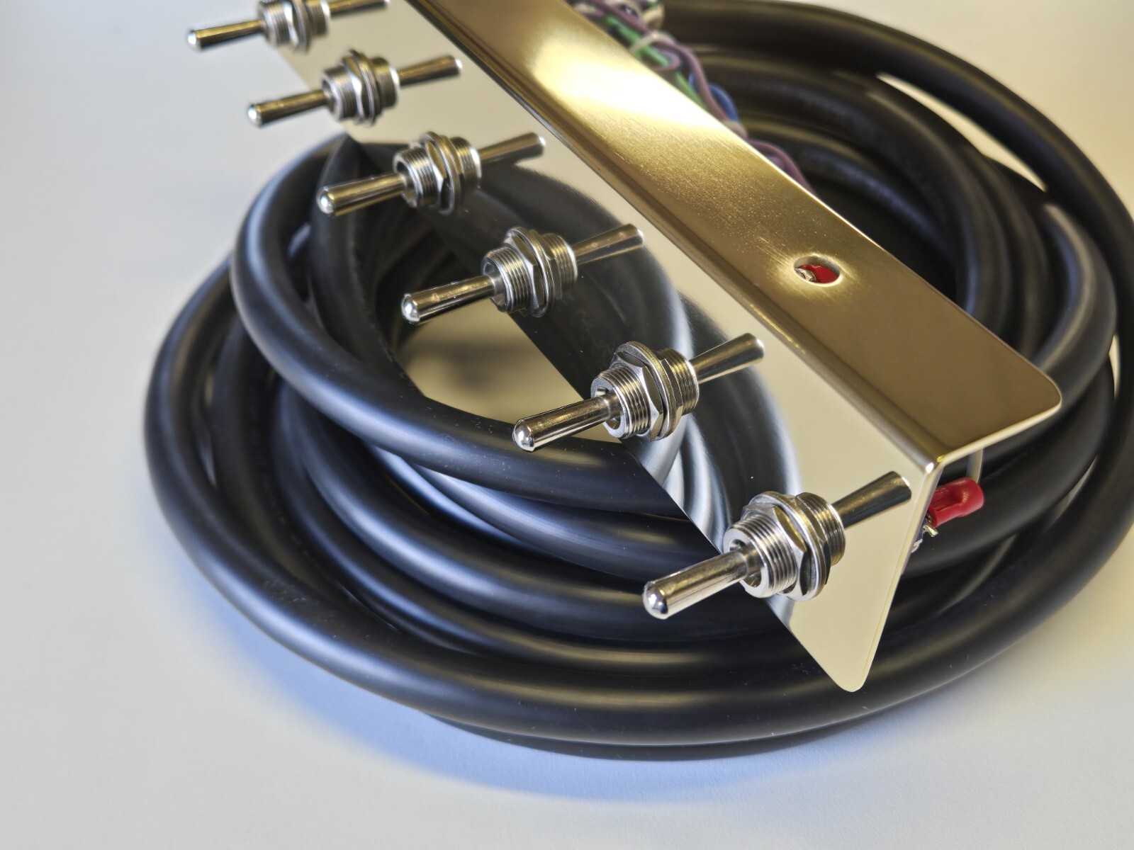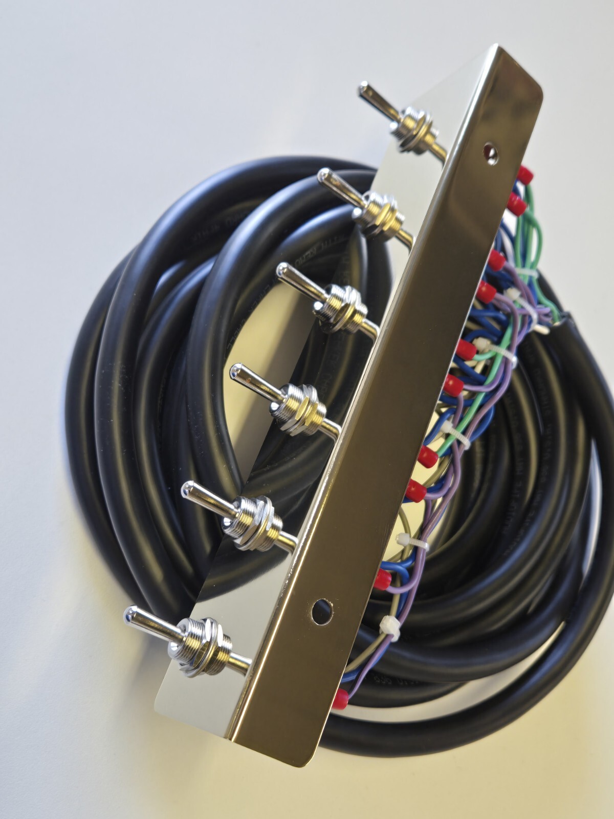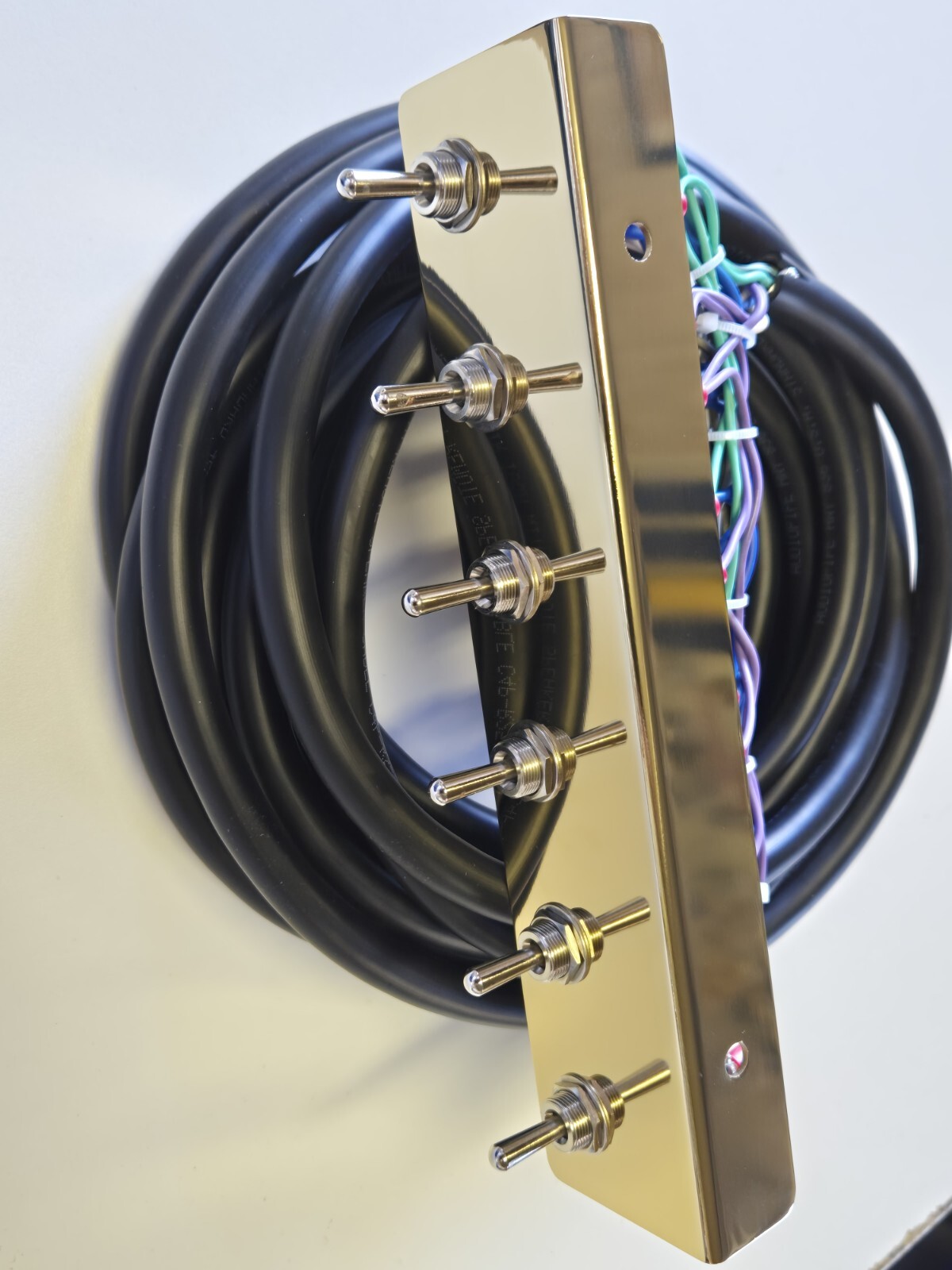 swith plate gold plated .Hydraulic switch kit :includes (4) -6 prong front and back side to side plus 2- 3prong for individual rear corners total of 6 switches. Switch cord 17 ft long 9 wire 18 g long cord.