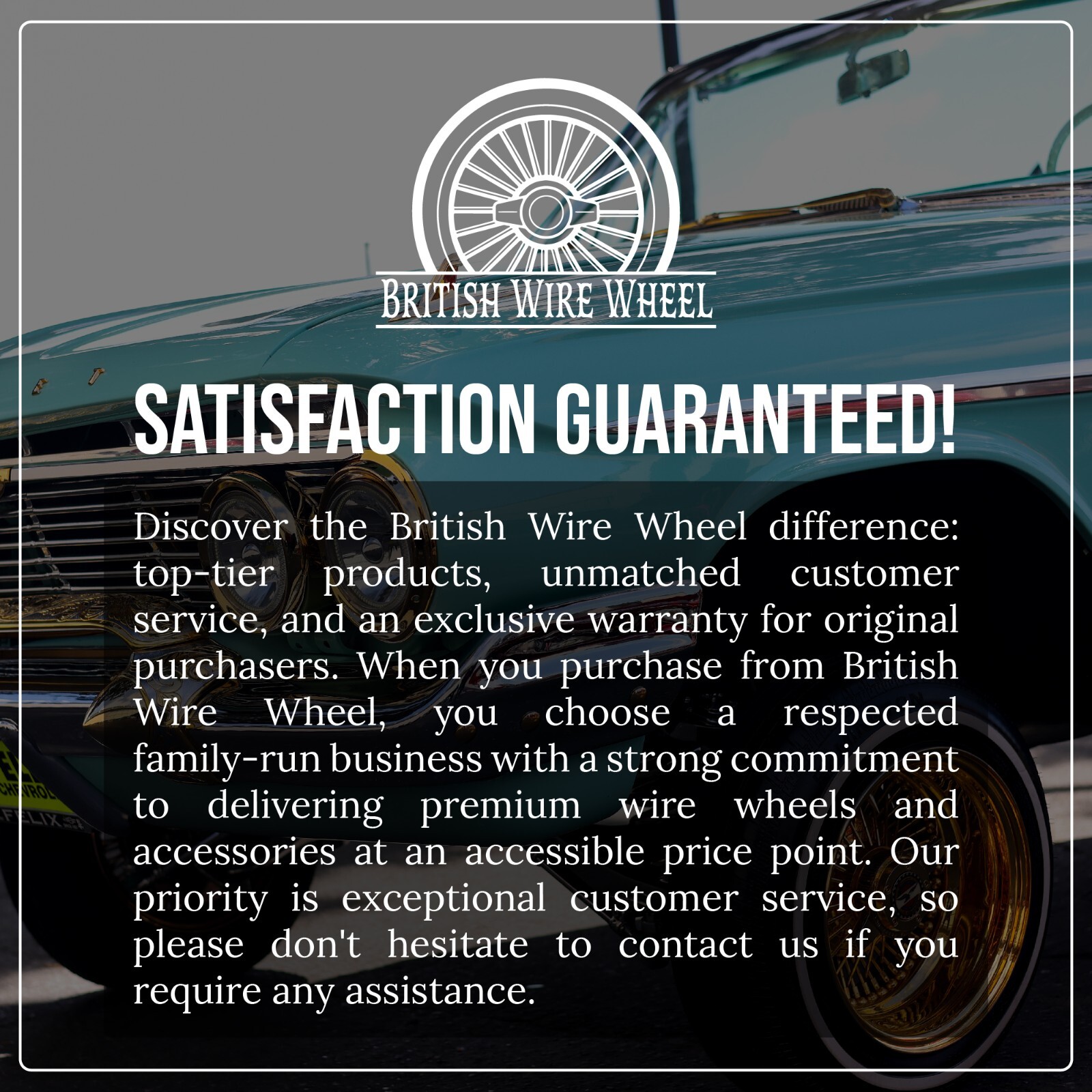 Discover the British Wire Wheel difference: top-tier products, unmatched customer service, and an exclusive warranty for original purchasers. When you purchase from British Wire Wheel, you choose a respected family-run business with a strong commitment to delivering premium wire wheels and accessories at an accessible price point. Our priority is exceptional customer service, so please don’t hesitate to contact us if you require any assistance.