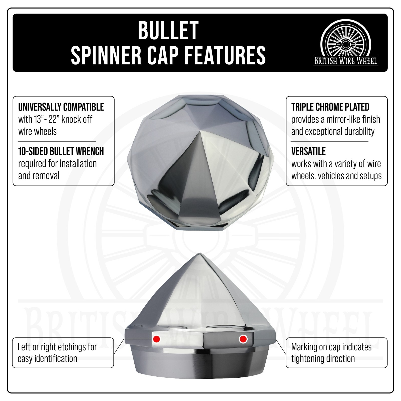 - (4) Bullet Chrome Spinner Caps – 2 Right, 2 Left Sides
