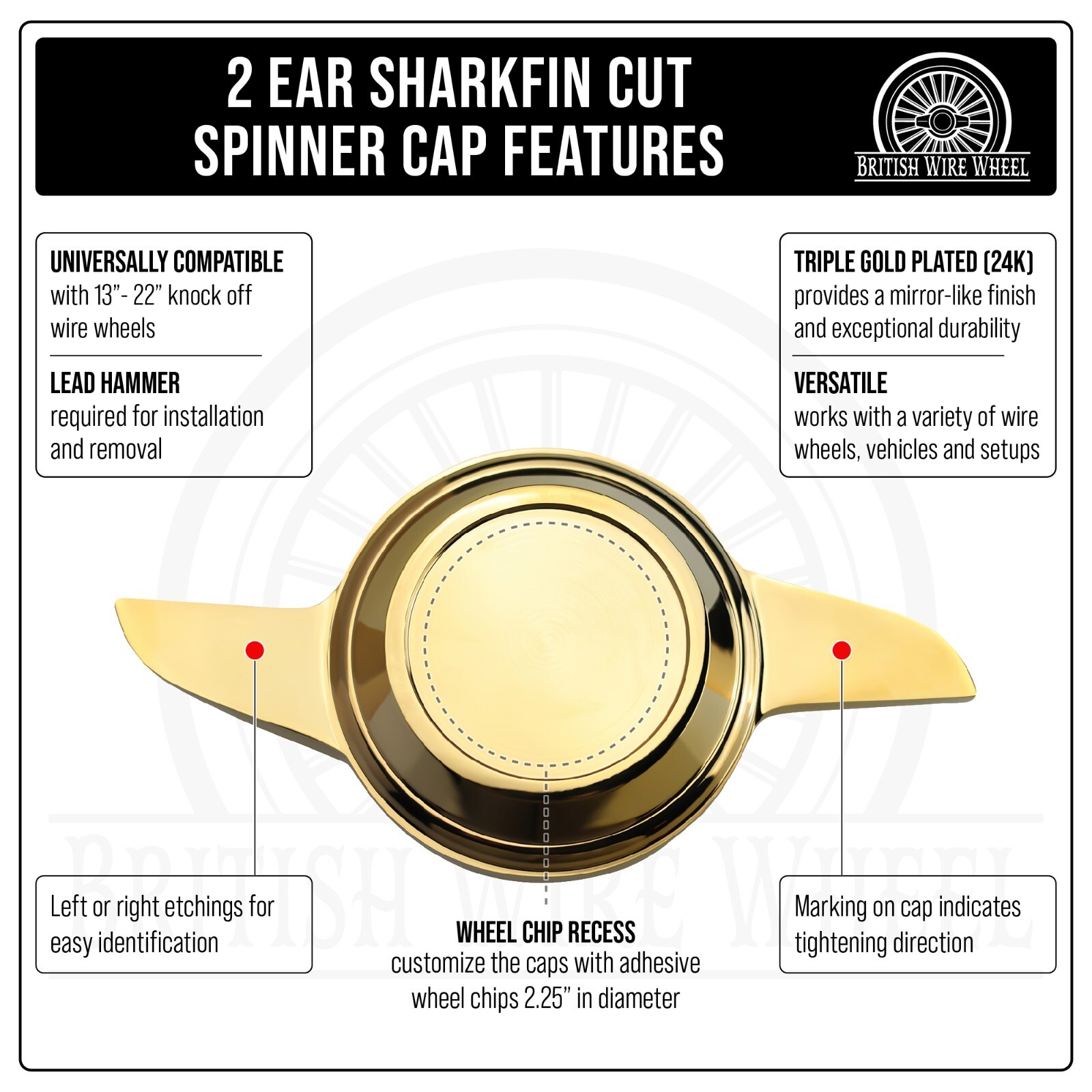 • (4) 2 Ear Swept Cut Gold Spinner Caps – 2 Right, 2 Left Sides