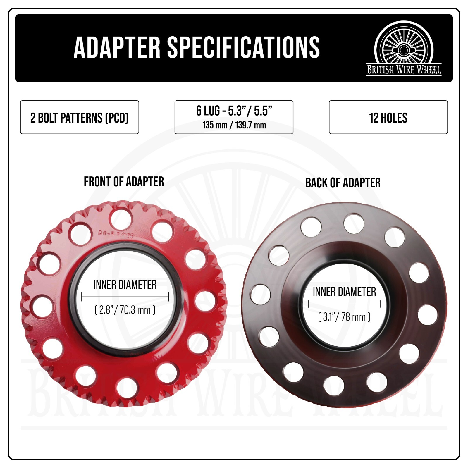 • 6×5.5” / 6×5.3” (in mm: 6×139.7 / 6×135)*