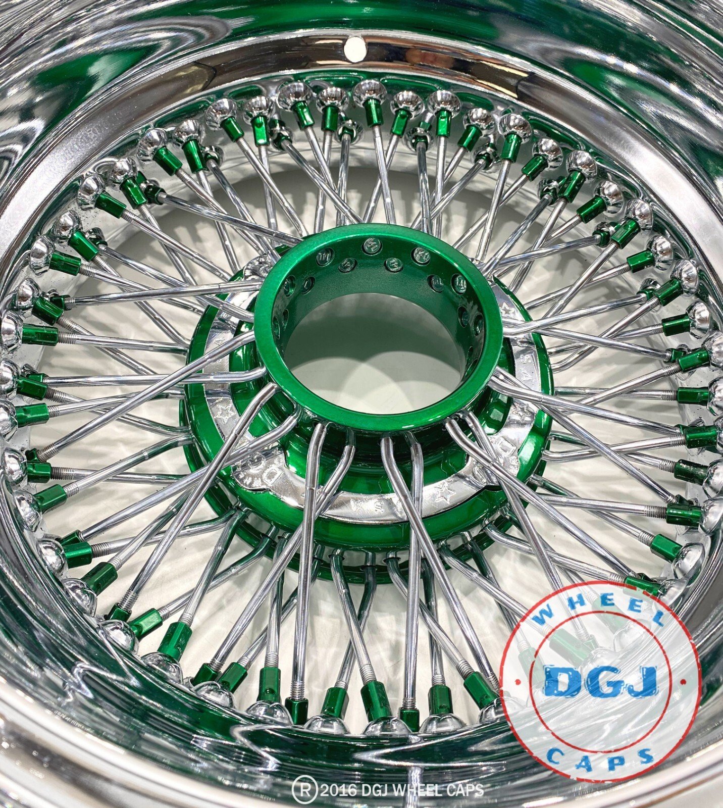 Home / Shop / Lowrider Accessories / Wheels / 14x7 / Dgj Wheel 14×7 Rev 72 Cross Lace Candy Green Nipples & Hub Lowrider Wire Wheels