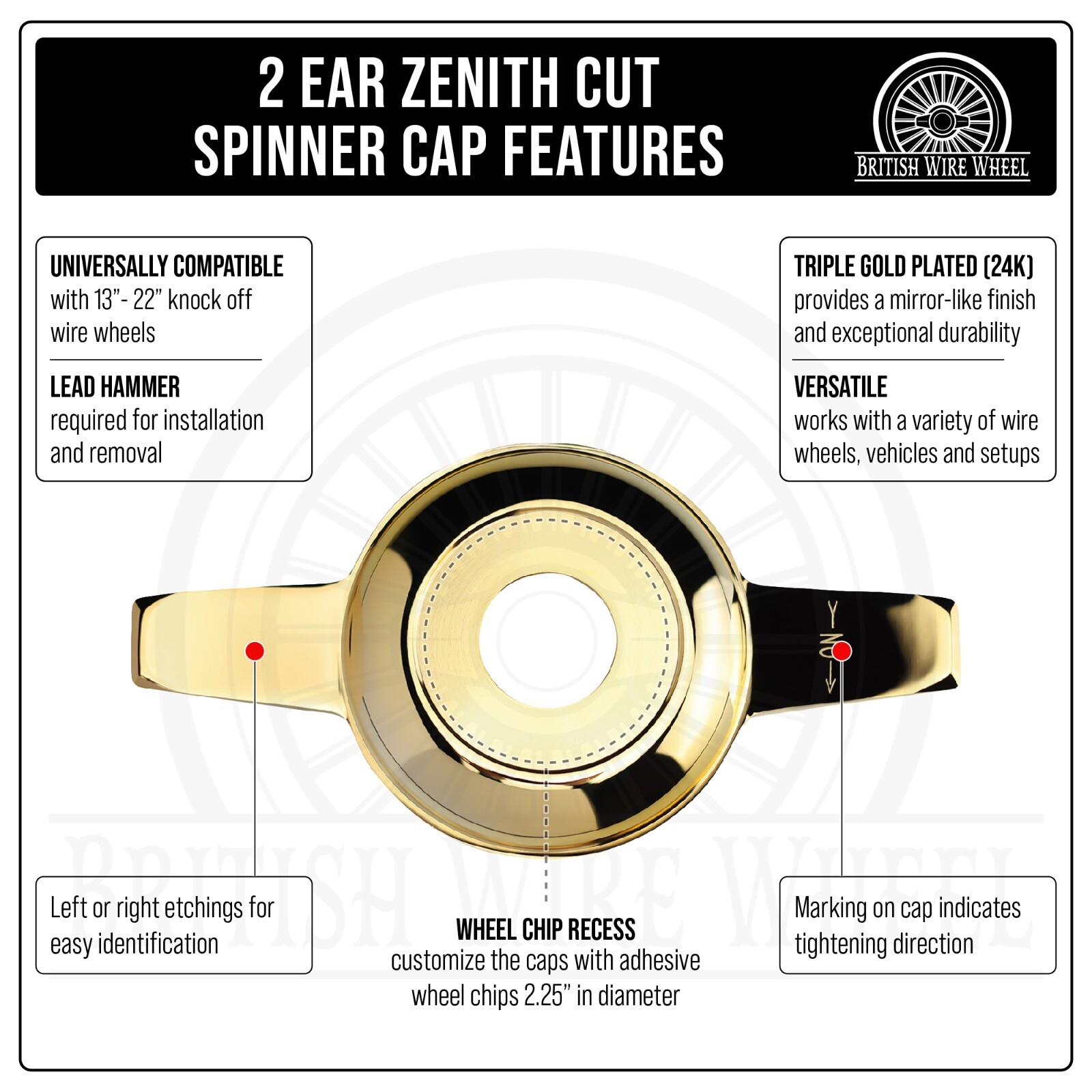 - (4) Zenith 2 Bar Cut Gold Spinner Caps – 2 Right, 2 Left Sides